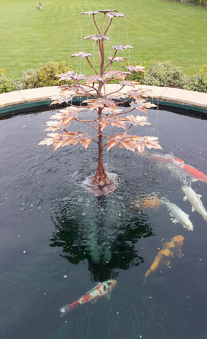 1.5m Norway Maple Copper Fountain by Metallic Garden – Handcrafted by Gary Pickles
